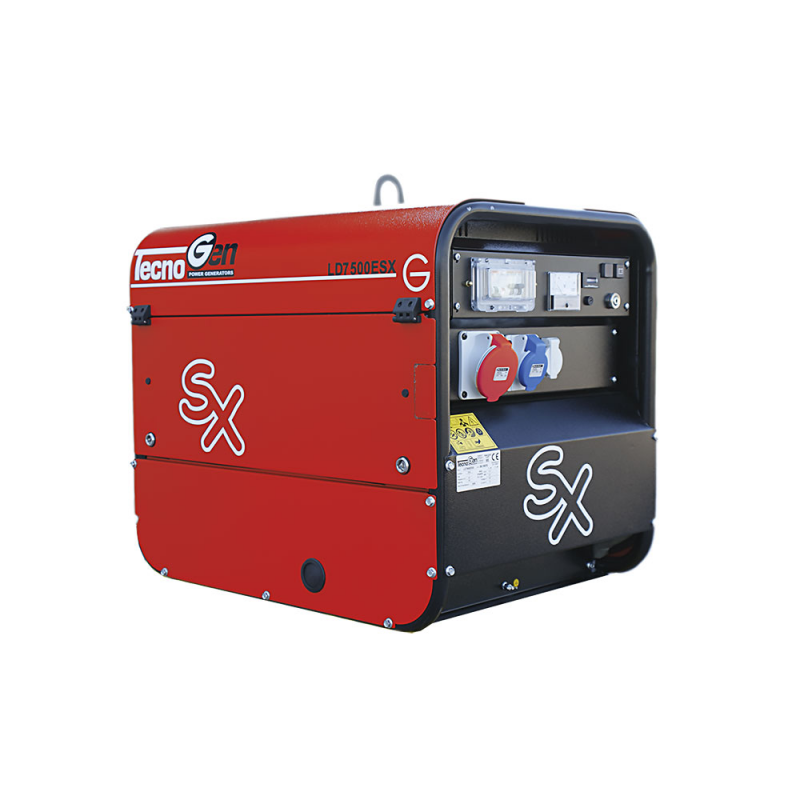 Equipaggiamento di serie del generatore: cofanatura zincata a caldo, punto di sollevamento, antivibranti, sebatoio integrato 20 litri, dispositivo protezione motore per basso livello olio e alta temperatura. Quadro di distribuzione con prese d'uscita tensione protette da magnetotermici e differenziale 0,03 A, batteria d'avviamento (fornita senz'acido), chiave di avviamento